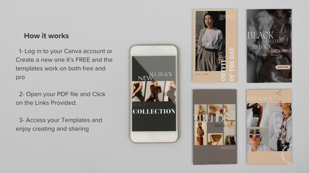 Whether you're launching new arrivals, announcing exclusive sales, unveiling seasonal collections, or simply showcasing a captivating fashion statement, these templates serve as an impeccable canvas to elevate your brand's narrative.